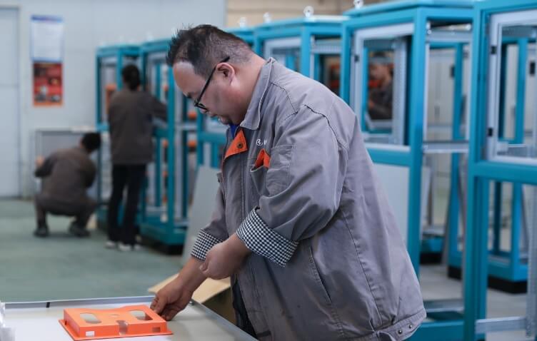 工業(yè)機(jī)柜即按電氣接線要求將開關(guān)設(shè)備、測(cè)量儀表、電器和輔助設(shè)備組裝在機(jī)柜中,對(duì)生產(chǎn)過程實(shí)現(xiàn)控制,且具有保護(hù)存放設(shè)備、屏蔽電磁干擾等功能。